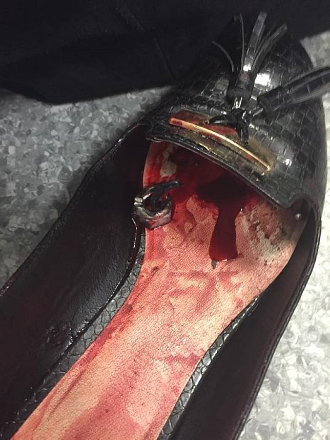 "Dia telah menderita banyak luka termasuk kehilangan jari tengah dari tangan kirinya" "Itu disebabkan oleh serpihan baja yang menembus jarinya, lalu masuk ke teleponnya dan akhirnya berhenti di hidungnya"